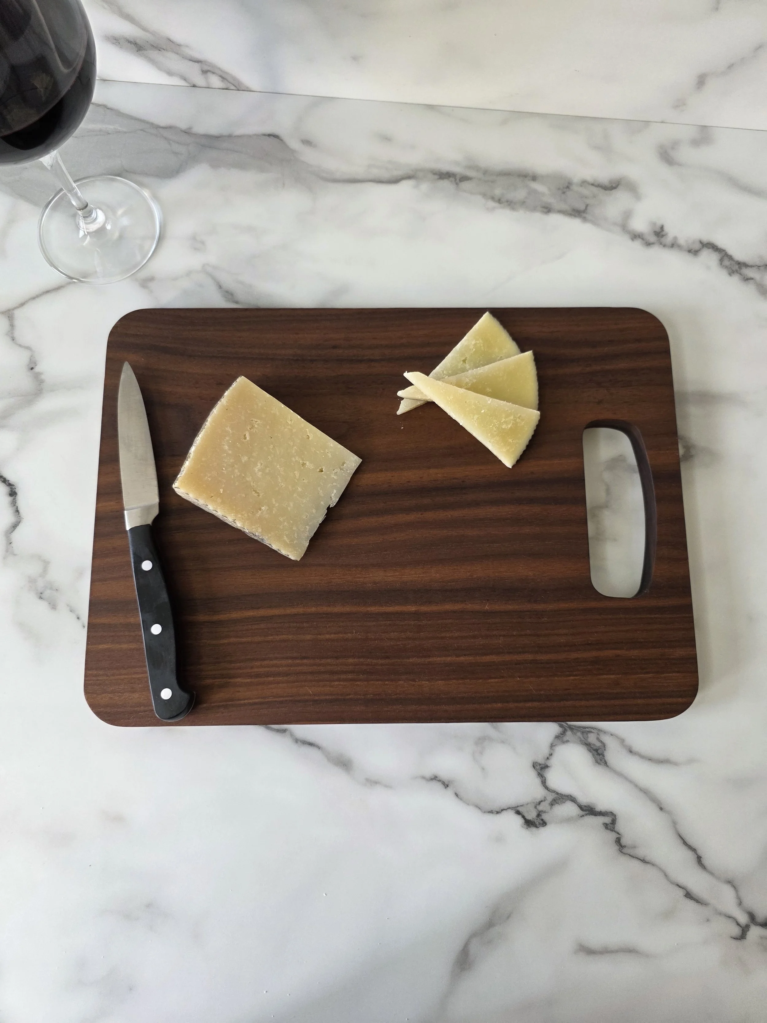 Handcrafted from premium walnut hardwood, this compact edge grain cutting board is both practical and stylish. The natural tones and grain of walnut create a timeless design, while the edge grain construction offers durability for everyday use.